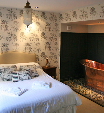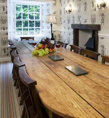 Tucked away between the lake and Grizedale Forest, the Eastern shore of Coniston Water has arguably some of the best views in Lakeland. Ruskin, Tennyson, Turner and Ransome have all been romanced by the majestic mountains across the lake and Coniston village nestled at their base a mile away. Set in the centre of this picnic perfect landscape, surrounded by farmland once owned by Beatrix Potter, the 16th century Townson Ground Estate boasts the ideal location for walking, biking, boating or simply relaxing. While away your days splashing around on the shoreline, hire a boat from the Coniston Boating Centre, or bring your own and moor it at the private jetty; spend the week fishing or sailing; plan rural rambles through the forest or the fells that end sitting by roaring fires in slate floored pubs, pints of Coniston’s Bluebird Bitter in hand. Brantwood’s outdoor theatre, music recitals, art workshops and craft fairs satisfy the culturally hungry, while a trip on the Steam Yacht Gondola takes you back to an era of Victorian splendour. Tarn Hows and Yew Tree Farm are on your door step, Hawksead and the dreamy days of Beatrix Potter’s furry friends are just over the hill. Townson Ground House Cistercian Monks, the Titanic and Strawberry Teas are woven into the history of this wonderful 400yr old country Estate. Today the original house is available for you to rent, the attached barns and stables, no longer required to house horses and keep hay have been converted into independently owned homes. Townson Ground House is a celebration of comfort and style. Owned by Interior Designer Jayne Reeve and her husband Joe, renovations took place in 2007 and the house now offers self-catering accommodation for 14 guests. Perfect for the extended family or a group of friends, charm emanates from the relaxed interiors. Fall into floral sofas and warm your toes around the open fires in the sitting room; eat hearty meals around the huge rustic French dining table next door. Each bedroom wows, one has its own copper bath, another an antique bed, Colefax and Fowler wall papers and reclaimed Belgium tiles bring colour and detail to cool en-suite bathrooms. In the spring, snow drops and daffodils abound, May brings rhododendrons and fragrant Azaleas, whether it’s a glass of crisp Chablis or a cool beer around the BBQ the hardest choice is where to have lunch, the lakeside picnic table or the sunny south facing garden. It’s so easy to lose track of time at Townson Ground. There are board games for rainy days and the private lake frontage for sunny ones. Plenty of places of interest locally and lots of good eating establishments close by. Horse riding, mountain biking, hiking, climbing and caving; it’s all within easy reach but what could be better at the end of the day, than coming home to this perfect rural retreat?